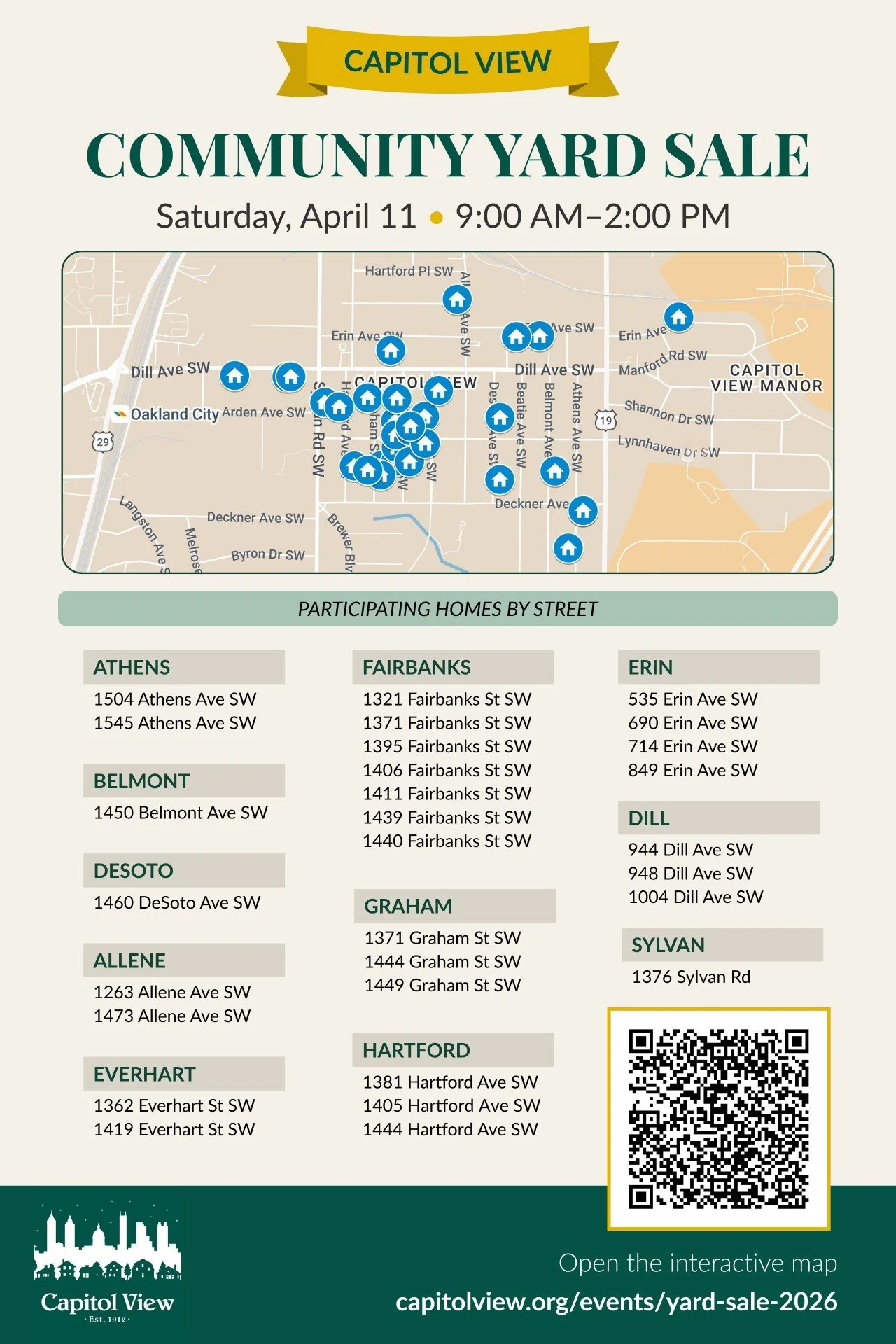 Whether you're hunting for a great find or just strolling the neighborhood, visit the 31 homes participating in the yard sale this year. It’s a great way to get out, connect with your neighbors, and explore.